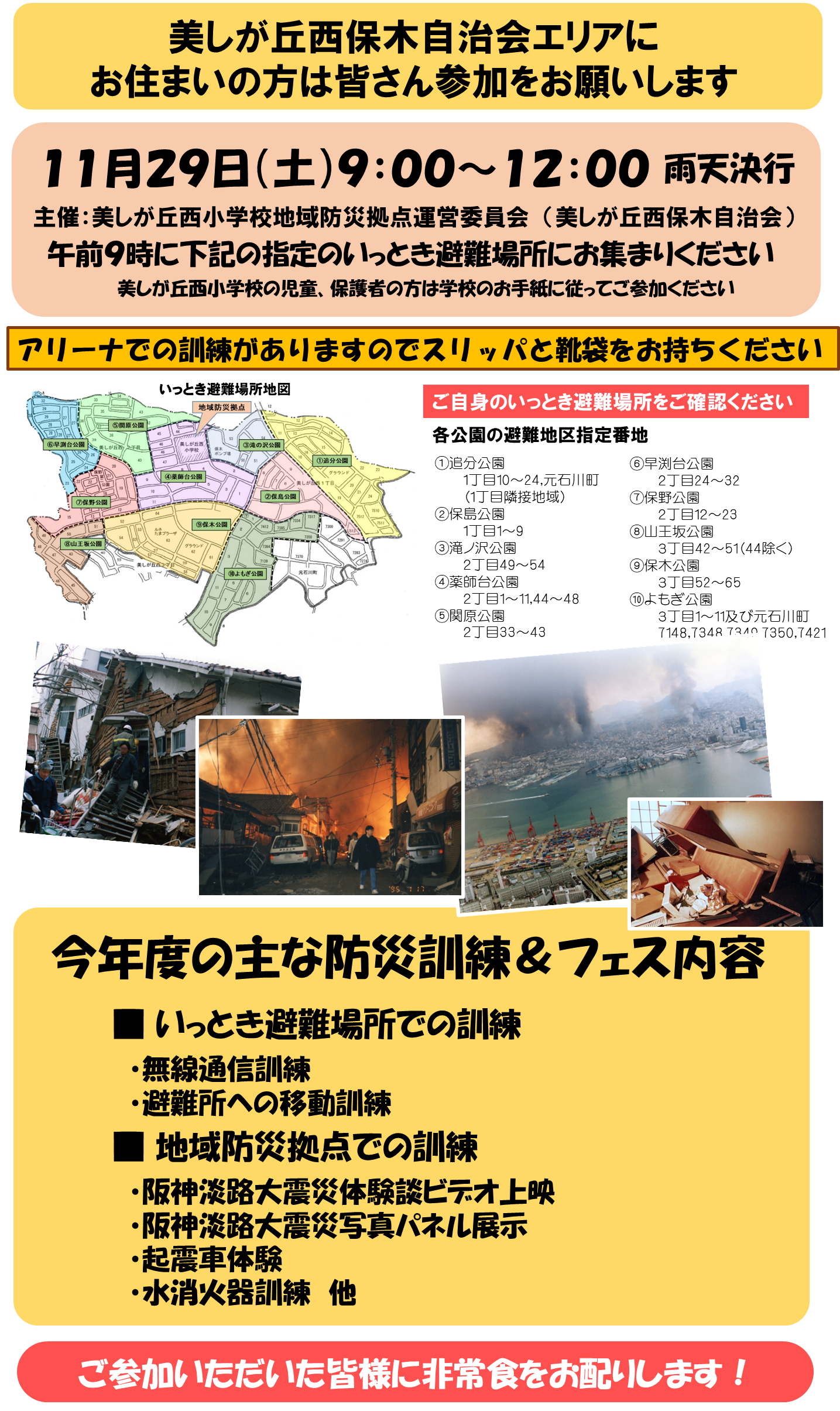 今年は阪神淡路大震災が発生して30年が経ちました。美しが丘西地区は多くの住宅が立ち並ぶ住宅街であり、津波の心配はないことから、大きな災害としては阪神淡路大震災に似た被害が発生することが想定されます。今一度、この時の震災を振り返ってみましょう!